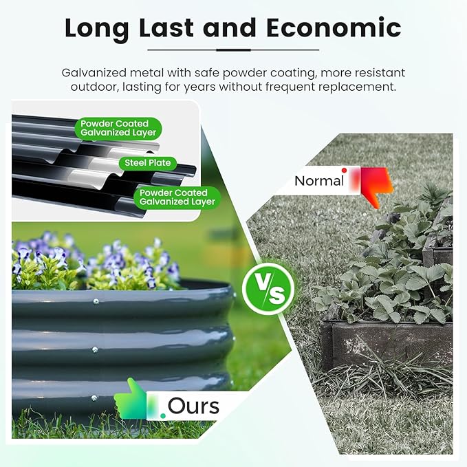 - 【Safe Rolled Edges】The edges of the metal planter raised beds are meticulously crafted with a rolled edge process, eliminating sharp edges to ensure your hands stay safe from cuts during assembly and planting, letting you safely enjoy the pleasure of gardening.