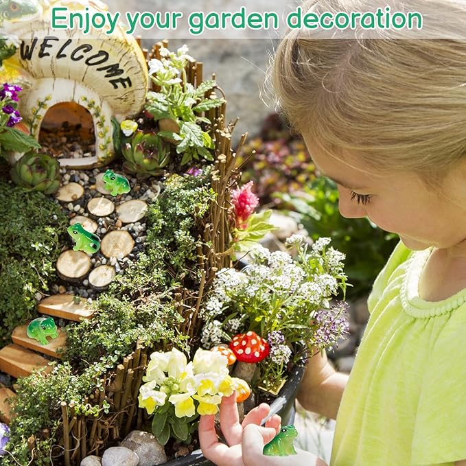 • WIDE APPLICATION - Miniature tiny frogs can enhance the attractive and interesting atmosphere of your room, dollhouse DIY, miniature garden landscape, fish tank, aquarium, plant, and cake, Suitable for decorating gardens, pools, patios fish tanks, gardens, rooms, cabinets, plant, etc