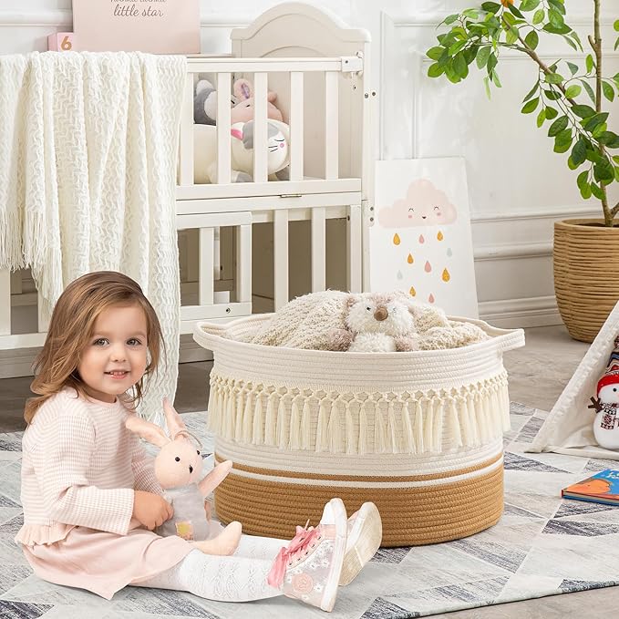 - 【100% NATURAL HANDMADE】:100% cotton rope,soft material without any chemicals woven basket. There are No plastics. No harsh chemicals. Our basket is soft and safe for kids and pets.our rope baskets are super durable and hold their shape well. they can be hand washed / air dried or put in your washer / dryer on delicate.