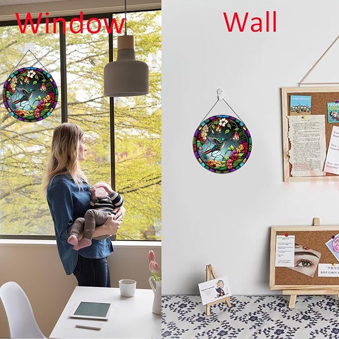 - 【Easy to Use】This stained glass window hanging painted a hummingbirds and flowers, vivid and full of vitality. Ideal for those who love pastoral and nature, and seek a return to original nature! You can hang it in the position you want to decorate,it's a great home decor.