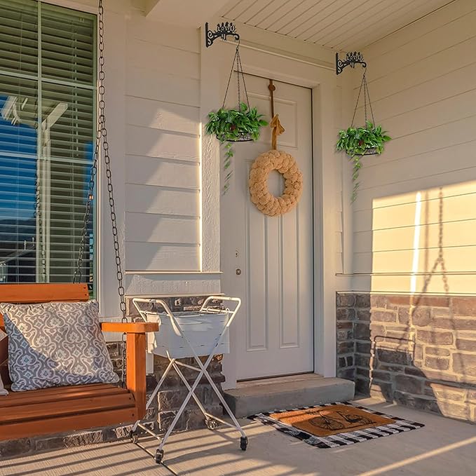 - ROBUST AND ANTI-RUST - Crafted from heavy-duty iron, our 10-inch hanging plant bracket features an 2 mm thick body, can hold up to 30 lb . The anti-rust coating ensures long-lasting durability, making it ideal for both window plant hanger indoor and plant hangers outdoor.