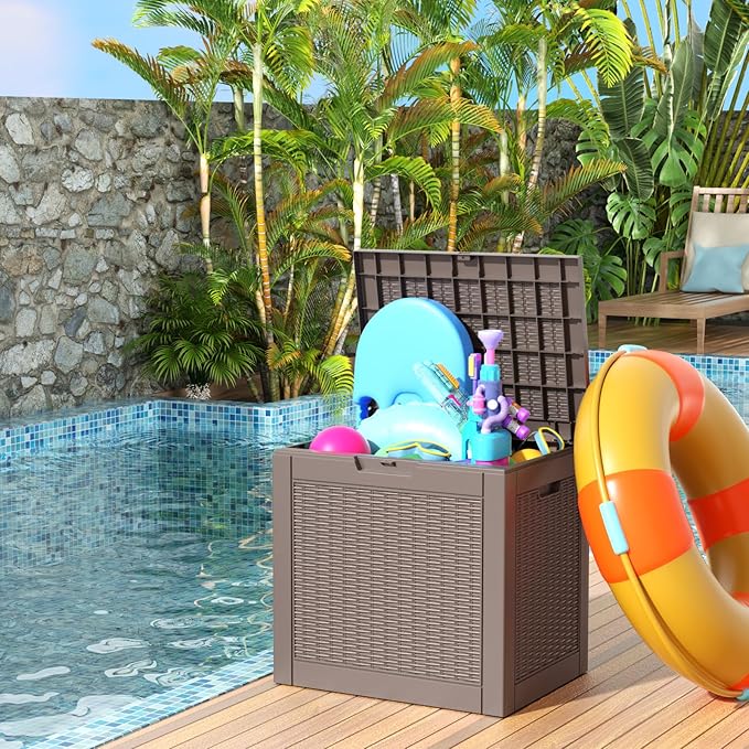 • Wicker Design: This resin storage box features a wicker pattern design, making it an excellent decoration for patios, gardens, yards, porches, and poolside areas.