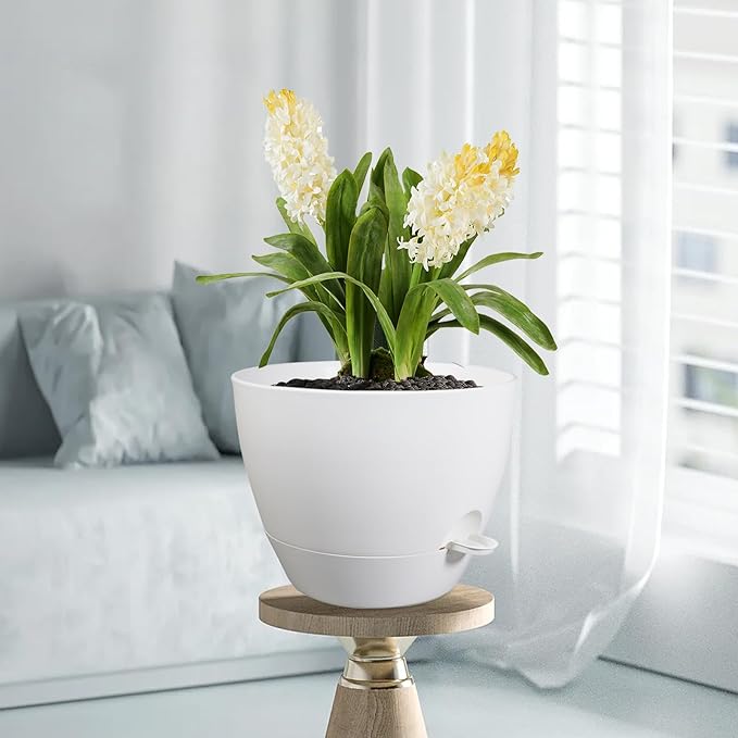 12 inch Large Self Watering Pots for Indoor Outdoor Plants, Plant Pots with Mesh Drainage Holes for Garden House Plants, Plastic Planters with Reservoir for Flower Plants, White