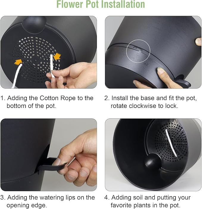 - 【Self-Watering Design】 Self-watering pots is includes a water reservoir at the bottom of the planter. This flower pots automatically supplies water to your plants as needed by a cotton rope, reducing the frequency of watering and ensuring your plants never go thirsty. The reservoir design also helps maintain a consistent moisture level, fostering optimal growth conditions.
