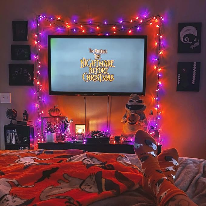 - EMBRACE THE SPIRIT OF HALLOWEEN: Immerse yourself in the haunting allure of Halloween with our orange and purple Halloween string lights. Perfect for sinister gatherings, horrible party, or ghostly galas, these lights will create a spooky atmosphere, ensuring a memorably eerie celebration