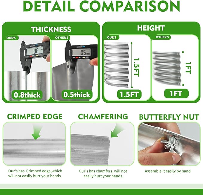 • Materials and Construction: The raised garden bed kit is constructed with sturdy metal 0.8mm thick, providing a reliable framework for your garden. The oval-shaped design adds a unique aesthetic,and the 17" height provides ample depth for plants