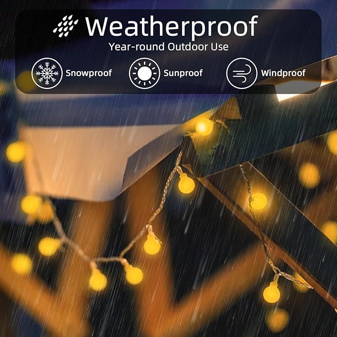 - Safety & Waterproof Design: The globe string lights have ETL certification and a 29v low voltage design with advanced safety features, giving families with children and pets peace of mind. The globe around the lights is shatterproof, increasing the durability of the string lights. The outdoor globe string lights are IP44 waterproof, perfect for home decoration without getting damaged, even in heavy rain and snowy conditions. Just make sure to protect the plug from water. These globe string lights are widely used for Christmas, holiday, wedding, kid's room, girl's bedroom, patio, and camping party decorations.