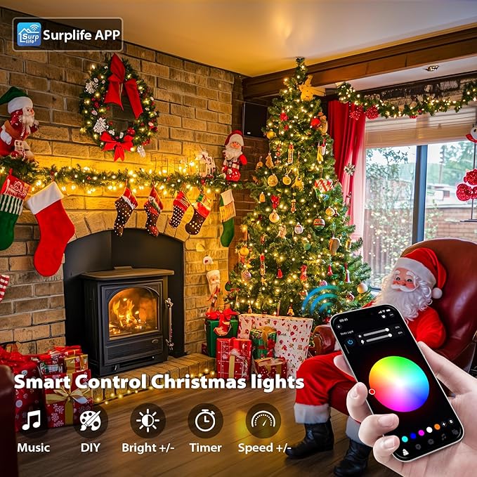 - EFFORTLESS CONTROL WITH REMOTE & APP: Experience the ultimate convenience with dual control options. Use the intuitive remote or seamlessly connect to smart Christmas lights dedicated "Surplife" app(available on both the App Store and Google Play) to adjust colors, switch between modes, and fine-tune brightness. Whether youโre hosting a gathering or unwinding at home, only transform with just a tap, making every moment feel special