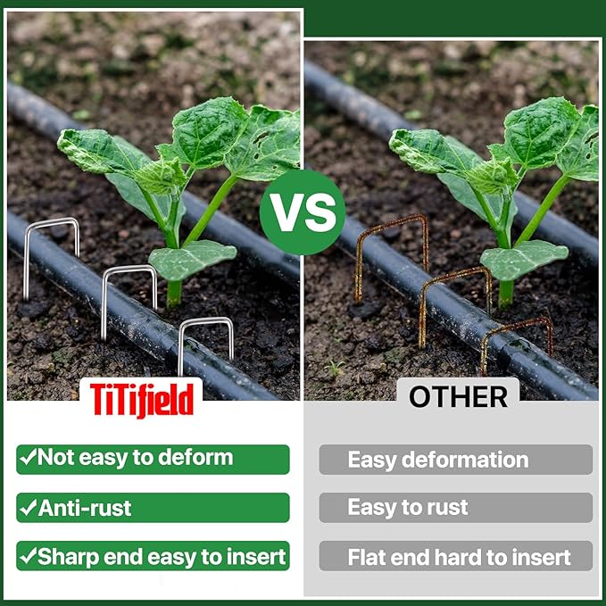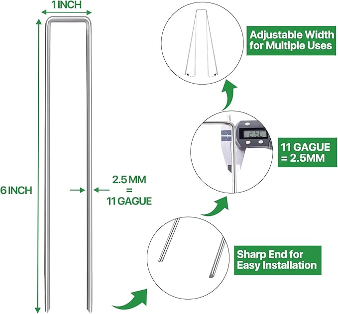 • Rust-Resistant Galvanized : These landscape staples are galvanized to resist rust and corrosion, offering long-lasting performance in all weather conditions. Trust these landscaping stakes to stay strong and reliable season after season.