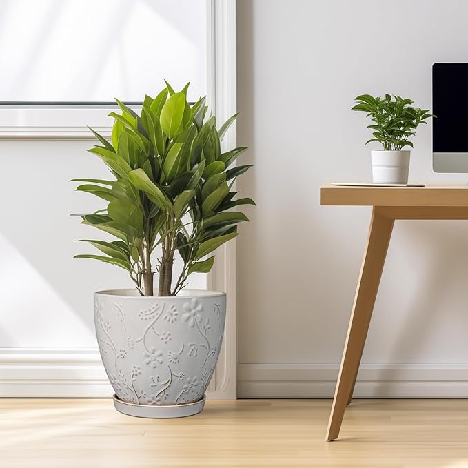 • Stylish Appearance: Our ceramic planter pot has a white main colour, a beautiful embossed petal and leaf pattern on the surface, elegant appearance making it ideal for home decor, garden decor and office decor
