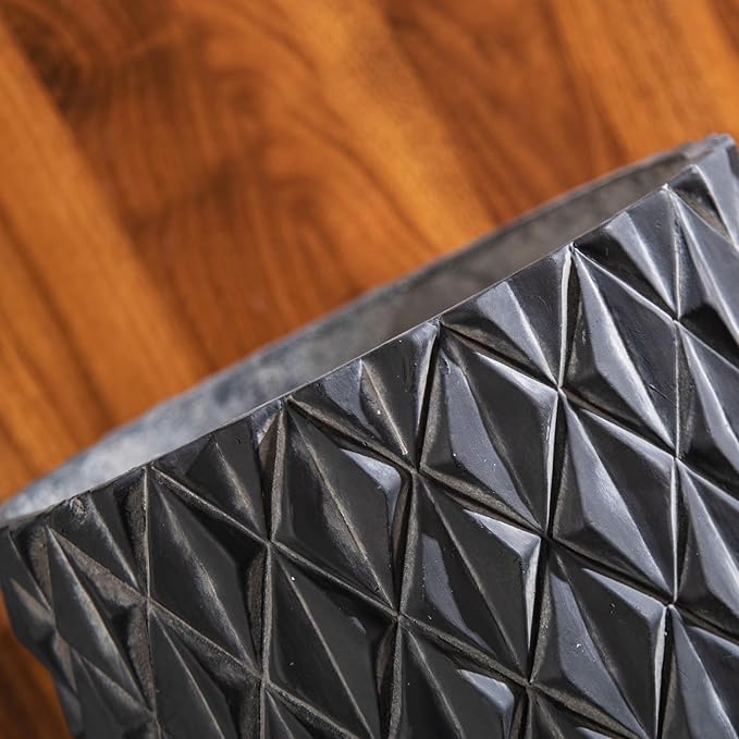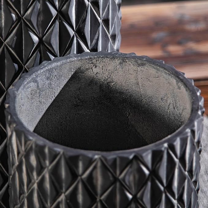 • [Unique Design]:The cylindrical cement planters used the Black lozenge pattern designs, giving the planters a unique aesthetic appeal and adds unique visual effect to the outdoor space