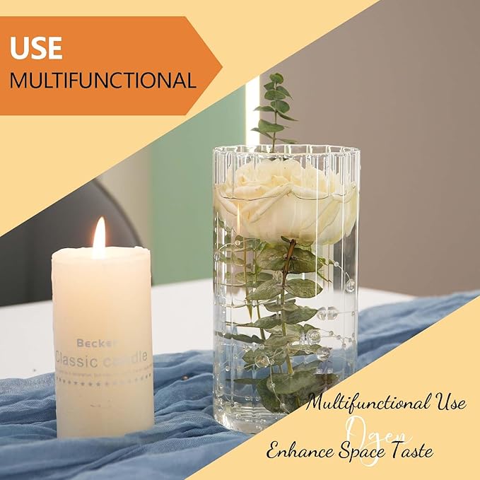 • 🌷【SIMPLE AND ELEGANT DESIGN】: The 12-pack 6-inch tall clear straight borosilicate glass vase features straight, textured surface that reveals unparalleled purity of beauty