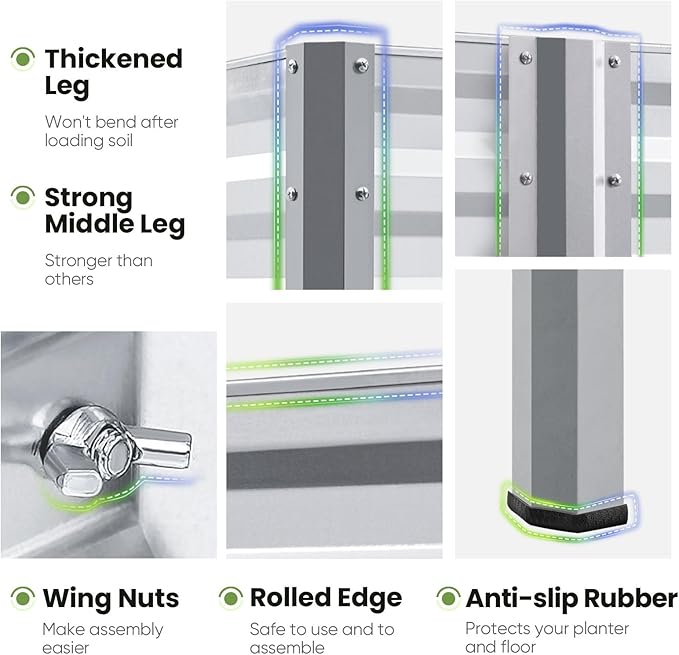 - 【Sturdy & Durable, Capacity: 600 lbs】Our galvanized steel planter raised bed is rust-resistant, sturdy, and can support up to 600 lbs. More durable than wooden raised garden bed kit, it ensures a longer lifespan without the worry of cracking or warping.