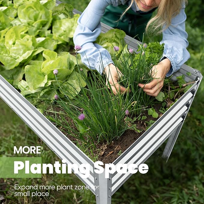 - 【Height: 30", Ergonomic Design】The galvanized raised garden bed stands at a comfortable height of 30 inches, eliminating the need to bend or kneel and sparing your back and knees from strain. It makes a perfect gift for relatives, friends, and anyone passionate about gardening.