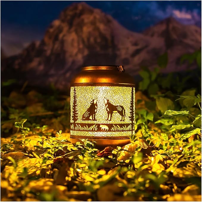 - Double the Glow for Your Garden! β Why settle for one when you can have two? With this 2-pack of Wolf Outdoor Solar Lanterns, you get double the beauty and charm. These lanterns project gorgeous, unique light patterns that create a warm, inviting atmosphere, adding fun and life to your outdoor space. The elegant hollow design and antique bronze color give them a stunning artistic look, perfect for decorating backyards, patios, pathways, tabletops, and more. Twice the lanterns, twice the style!