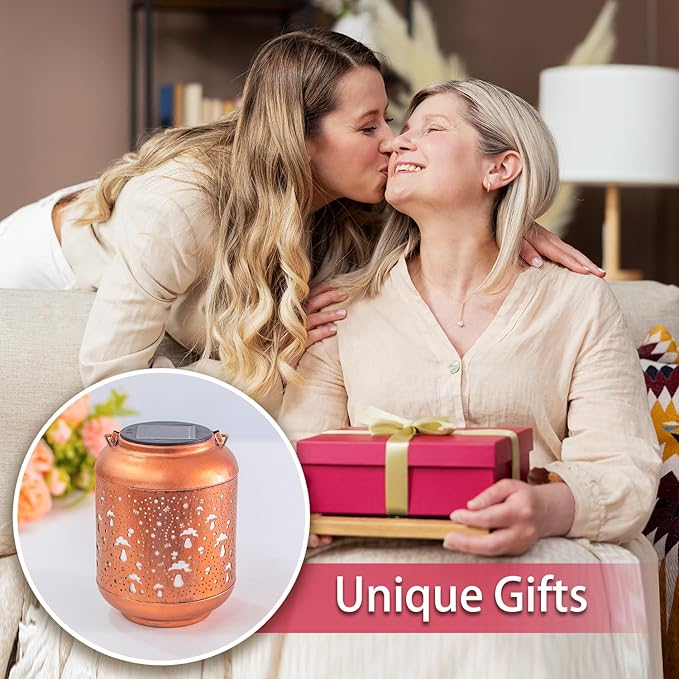 - A Gift That Shines Twice as Bright! β Mushrooms symbolizes good luck, wealth, longevity and other beautiful symbols. This two-pack of Mushroom solar hanging lantern is perfect for Mother's Day, Father's Day, Birthday, Christmas, Valentine's Day, Wedding, Thanksgiving, New Year and housewarming gift for mother, father, mom, dad, grandmother, grandfather, wife, husband, daughter, son, lover, friend or yourself. This is definitely a unique and surprising garden gift!