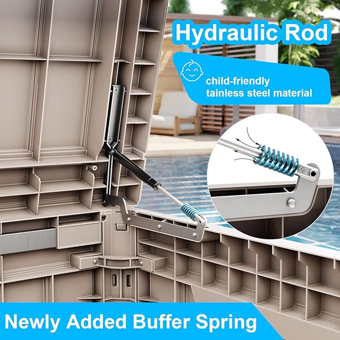 • EASY TO USE: The deck storage box is designed for convenience with built-in handles on both sides, allowing easy lifting and movement. Plus, for added security, you can install a password lock/small lock (not included) on the top cover