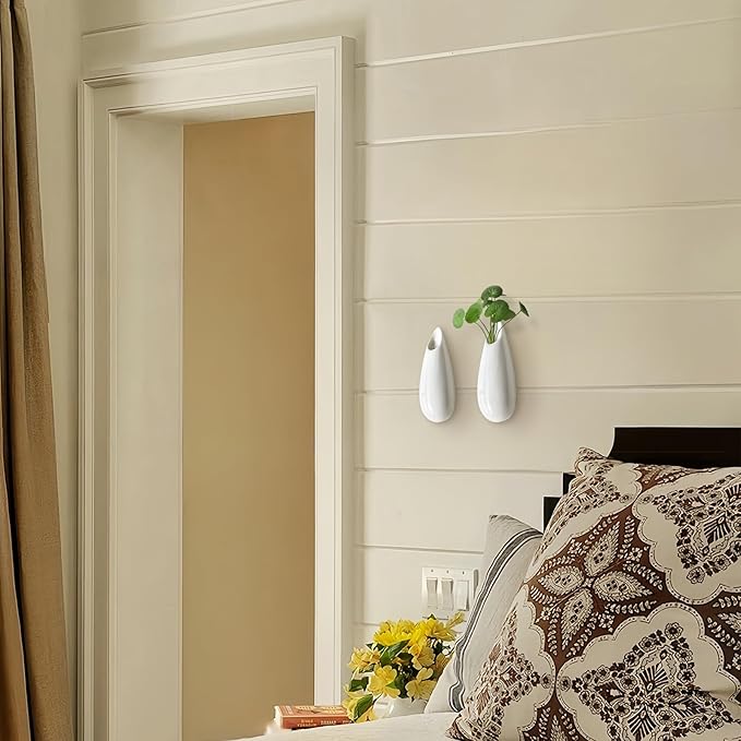 • Minimalist Design:These white wall-mounted vases feature a minimalist style that is perfect for both indoors (such as a hallway, staircase, or a cozy spot near a sunny window) and outdoors (such as a porch, patio, or garden wall)