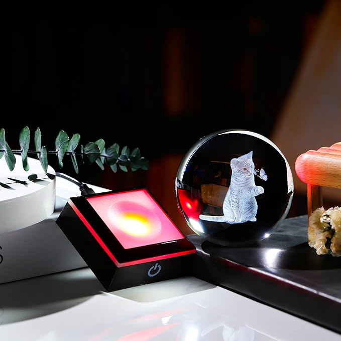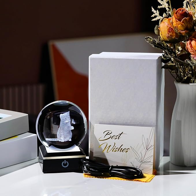 • 🍀Crystal Ball Cat Lamp- Crystal Glass Cat Night Light size: 3.14". Made of K9 Crystal, Interior images are carved by Advanced 3D Laser Engraving Technology.