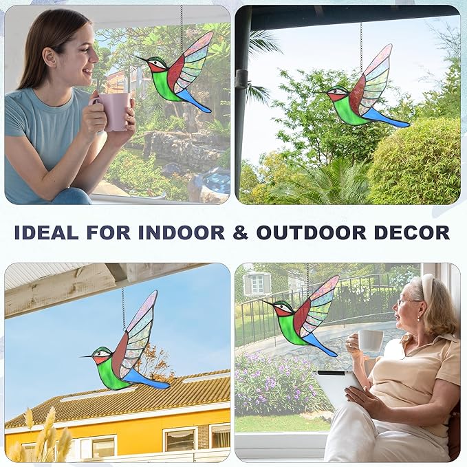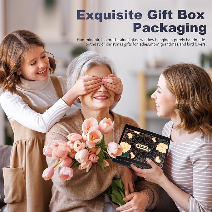 • Exquisite Gift Box:The stained glass window hanging is a hummingbird gifts for women.It can be used as a hummingbird gifts for female friends, mothers, birthdays, anniversaries, and Christmas,gifts for bird lovers