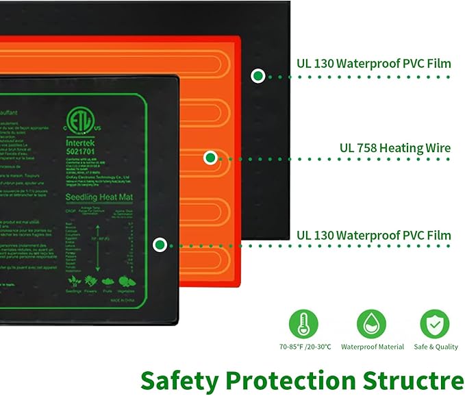 • ETL Safety Certified - Ruyyi Seedling Heat Mat with ETL listed,Conforms with UL 499, Conforme à la norme UL 499,CSA C22.2 No64