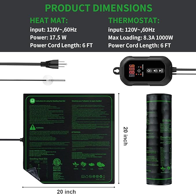 20"x 20" Seedling Heat Mat with Digital Thermostat Combo Set,ETL Certified and Durable Waterproof Warm Hydroponic Heat Mat for Germination,Indoor Gardening,Brewing and Greenhouses