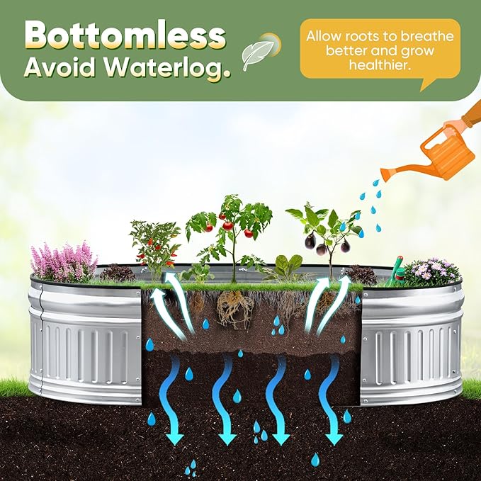 - 【Rubber Strip Edging, Open Bottom】Our garden beds come with rubber edging to prevent cuts during installation or planting, making it safe to use around pets and children. The open base design prevents water accumulation and rot, allowing roots to breathe better and providing a healthy environment for plant roots.