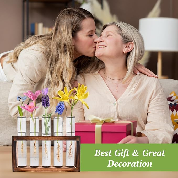 2pcs Desktop Glass Plant Propagation Station with 10 Test Tubes in Wooden Stand - Hydroponic Plants Cutting Office Home Decoration and Garden Decor Terrarium (10 Tubes)
