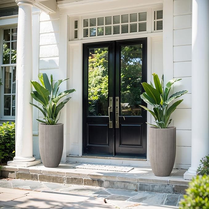 - Large & Versatile β Whether displaying a vibrant plant indoors or elegantly placed on your front steps, porch, or patio, this spacious planter effortlessly adapts to any setting. Its distinctive style complements a wide range of dΓ©cor, from modern and minimalist to traditional, adding a touch of sophistication and charm to your space.