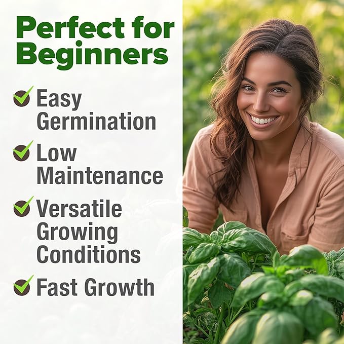 - IDEAL FOR CONTAINER AND PATIO GARDENS β These basil seeds for planting outdoors or in containers offer versatility for gardeners with limited space. Perfect for patios, balconies, or small indoor herb setups, our basil seeds for planting indoors grow well in containers, letting you create a personal herb garden anywhere. This compact basil plant thrives in any environment, making it a fantastic choice for those new to growing herb and vegetable seeds.