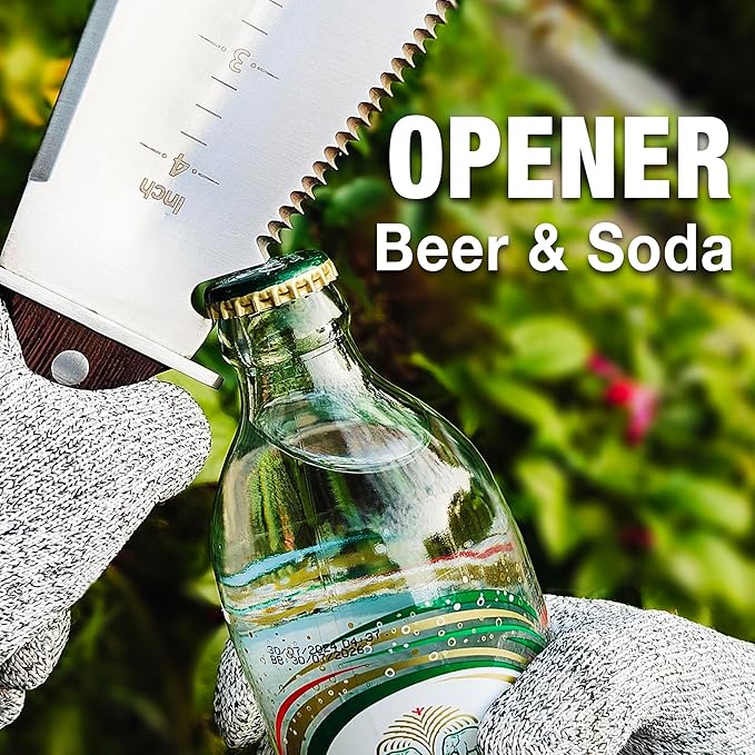 • 4-in-1 Gardening Tool: Combines garden knife, trowel, saw, and bottle opener.