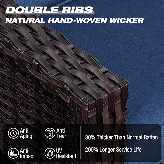 - Comfy Thick Cushion: Upgraded cushions are all made of high density sponge with 4 inches, thick sponge seat cushions and soft back cushions gives you comfortable support. The cushion cover is made from olefin fabric, which is breathable, UV-resistant, and waterproof. It features a zipper on the side for easy removal and cleaning