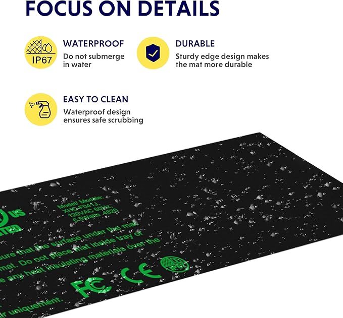 • Upgraded design: Heat mat has a temperature adjustable controller knob temperature can be adjusted manually, equipped with a liquid crystal thermometer for easy temperature control
