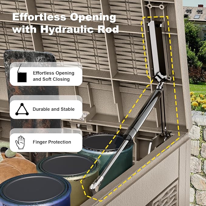 • EASY ASSEMBLY: The outdoor storage box adopts a Clip design, ensuring effortless assembly. A single person can easily put all panels together without requiring any tools