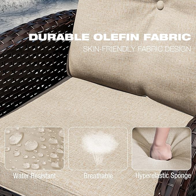 - Smooth 360°Swivel & Glide: The patio swivel chair features a stable and secure round base design, allowing for effortless 360-degree rotation. It lets you easily adjust your position while soaking up the sun, offering ultimate relaxation. The swivel function lets you turn to enjoy the surrounding views, while the rocking motion adds a soothing, gentle swing. Perfect for unwinding or chatting with friends