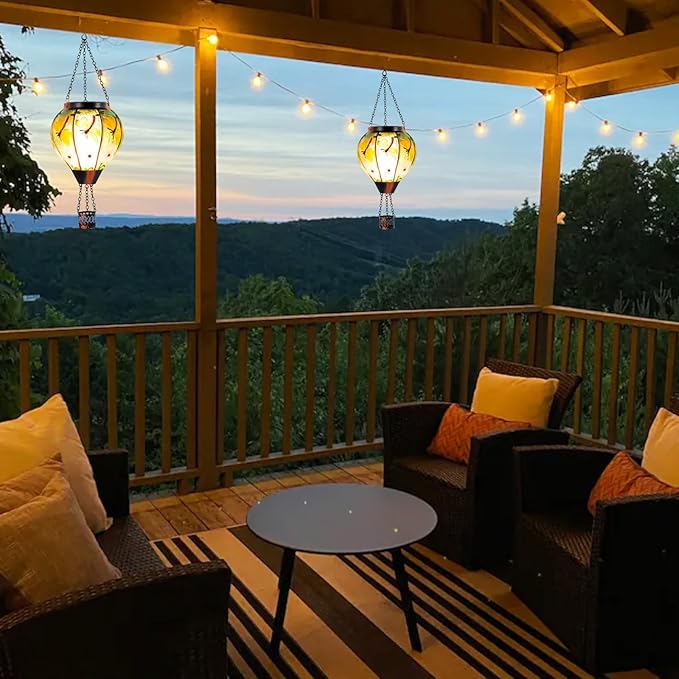 - 【Solar-Powered】Outdoor solar lanterns absorb sunlight during the day and automatically light up at night, providing 6-8 hours of lighting. The soft and warm light of hot air balloon solar lantern creates a romantic and peaceful atmosphere for the outdoor space.