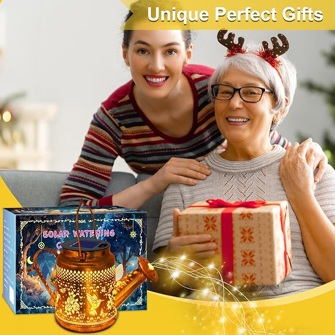 - Nighttime Garden Magic: This solar-powered watering can lantern creates a enchanting ambiance with its warm golden glow. The cascading string lights resemble a stream of sparkling stars, casting mesmerizing patterns on the ground. Perfect for transforming your garden, patio, or yard into a romantic retreat after dark.