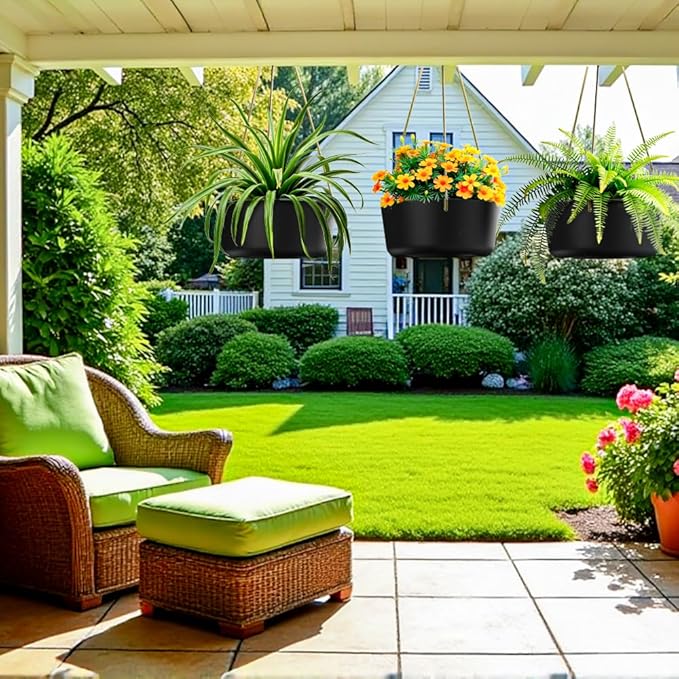 • Drainage Holes and Plugs: A water outlet is designed in the middle of the bottom of the hanging flower pots, helping prevent root rot and keeping your plants healthy. Coming with removable rubber plugs to ease the concern of overwatering for your indoor outdoor plants.