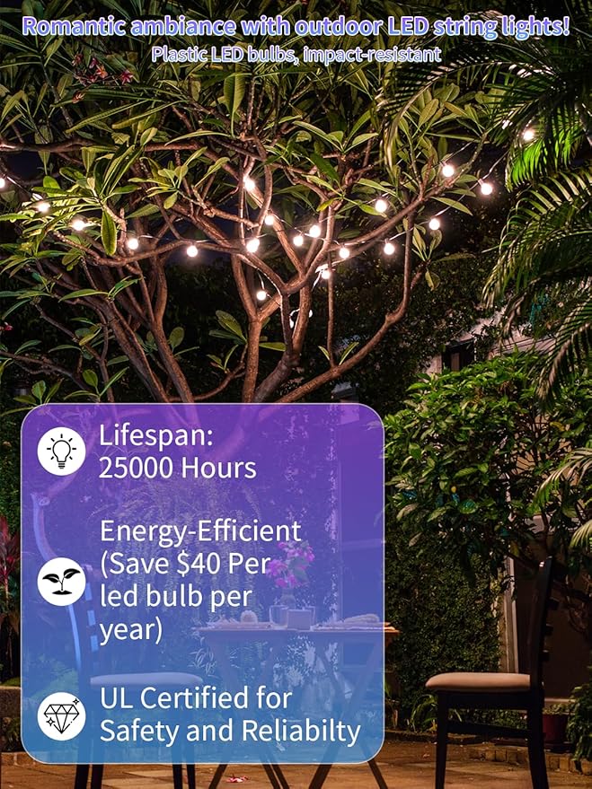- WIDELY USE:LED cafe lights string are the perfect decoration for balcony,patio,garden,porches,pergola,gazebo,deck,tent,umbrella,party,dinner,wedding,christmas and more.Enjoy more illumination or festive flair for any indoor & outdoor space