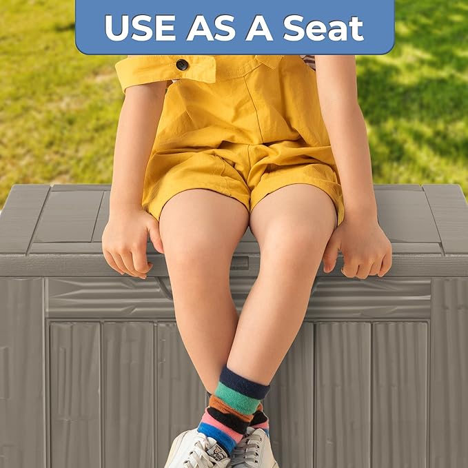 • Weatherproof Resin for Year-Round Use. Durable, waterproof resin, this deck box resists rain, sun, and UV exposure. Ideal for all-season use, it wonโ€™t peel, rust, or warp like wooden or metal boxesโ€”keeping your items protected outdoors.