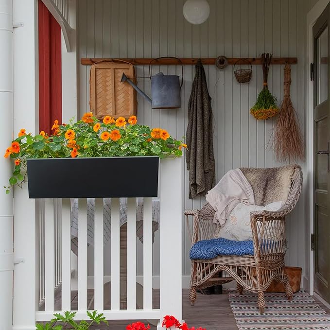 - LARGE RAILING PLANTERS: 30x7.1x7.1 inches,perfect for balconies, porches, decks, and fences, this planter box provides a flexible solution for displaying your favorite indoor or outdoor plants.