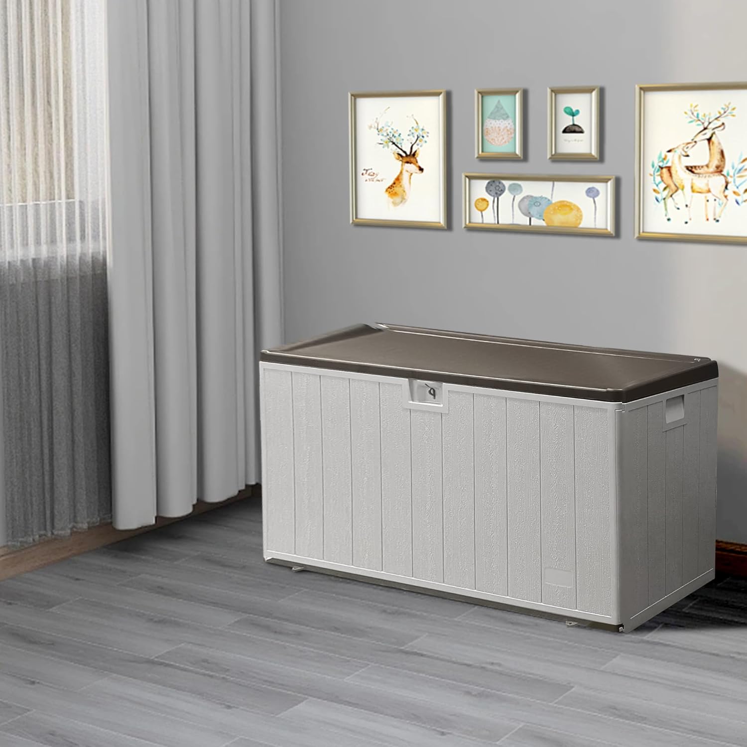 • Yardgrace 120 Gallon Pro Outdoor Storage Box, Waterproof Resin Deck Box for Patio, Pool, and Garden, Lockable Bin for Cushions, Tools, and Accessories, UV-Resistant, Black