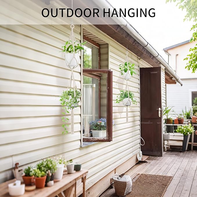 • Easy Installation for Indoor & Outdoor Use: Simply spread the four cords and place your pot in the center to hang from a ceiling hook or wall bracket; Perfect for balconies, living rooms, offices, and moreโ€”enhancing any space with minimal effort