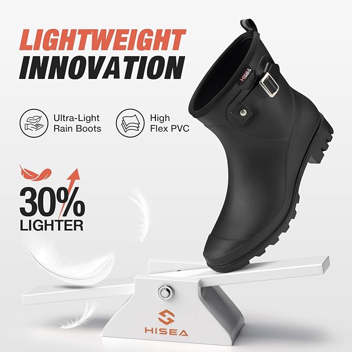 • Lightweight & All-Day Comfort: 30% lighter than traditional rain boots (only 401g per boot!) with breathable polyester lining to prevent sweat. The 4mm removable cushioned insole provides arch support and shock absorptionโ€”ideal for walking, standing all day, or outdoor adventures.