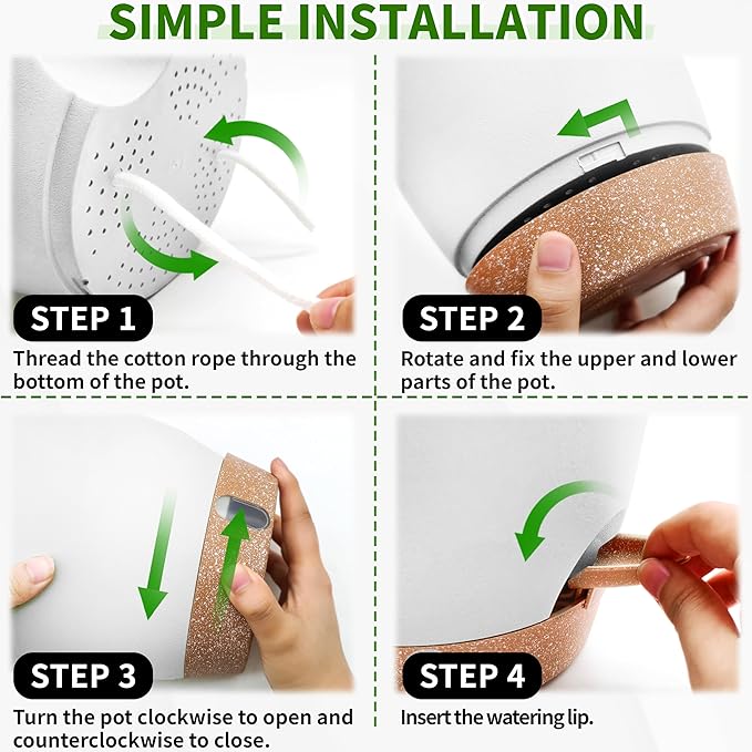 • 【Self-Watering Design】The super large water storage tank and cotton core can provide automatic watering for most plants for 14 days, and the perfect self watering design allows you to travel and vacation with peace of mind.