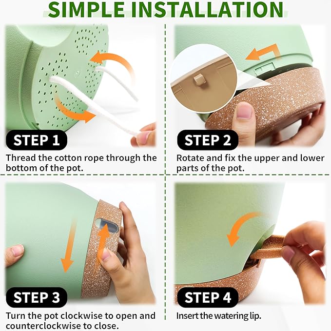 • 【Self-Watering Design】The super large water storage tank and cotton core can provide automatic watering for most plants for 14 days, and the perfect self watering design allows you to travel and vacation with peace of mind.