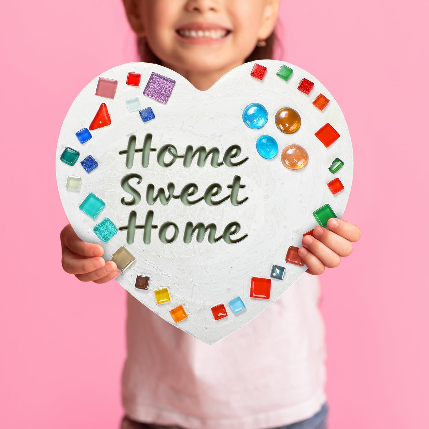 • Comprehensive Set: create a vibrant stepping stone masterpiece with our complete DIY craft; It includes 20 heart stepping stone molds, 250g of mosaic tiles, and 3 carving tools, nice for crafting memorable garden decor(no concrete mix)