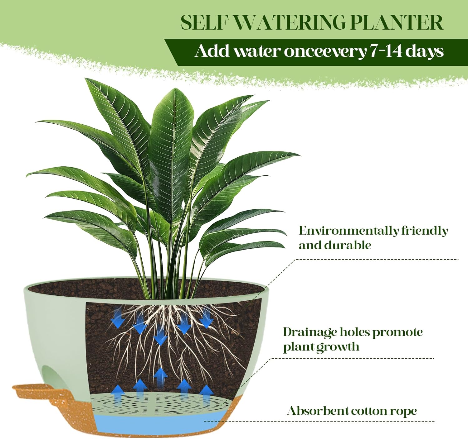 • πŸ’§ EASY WATER MANAGEMENT: Patented self-watering system delivers water to the roots for up to 2 weeks! Includes water dispenser for easy filling and removable reservoir for easy cleaning.