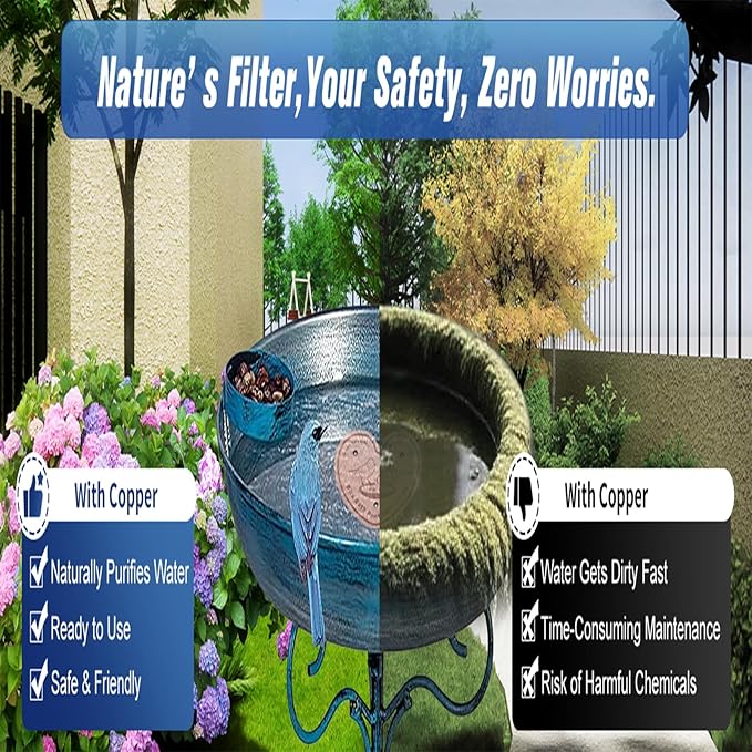 • High-Purity Copper Material:Made of 99.9% pure copper (0.6mm thick), these discs naturally help maintain cleaner water in bird baths by inhibiting algae buildup.