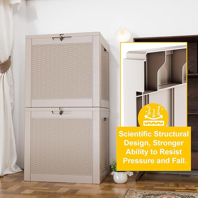 • ADAPTABLE TO VARIOUS SCENES: Whether used as an indoor laundry storage chest or an outdoor deck box container for items like outdoor cushions, garden tools, pool accessories, and sports equipment, this patio storage box provides abundant space. It's also versatile as a side table, yard seat, storage bench, or footrest